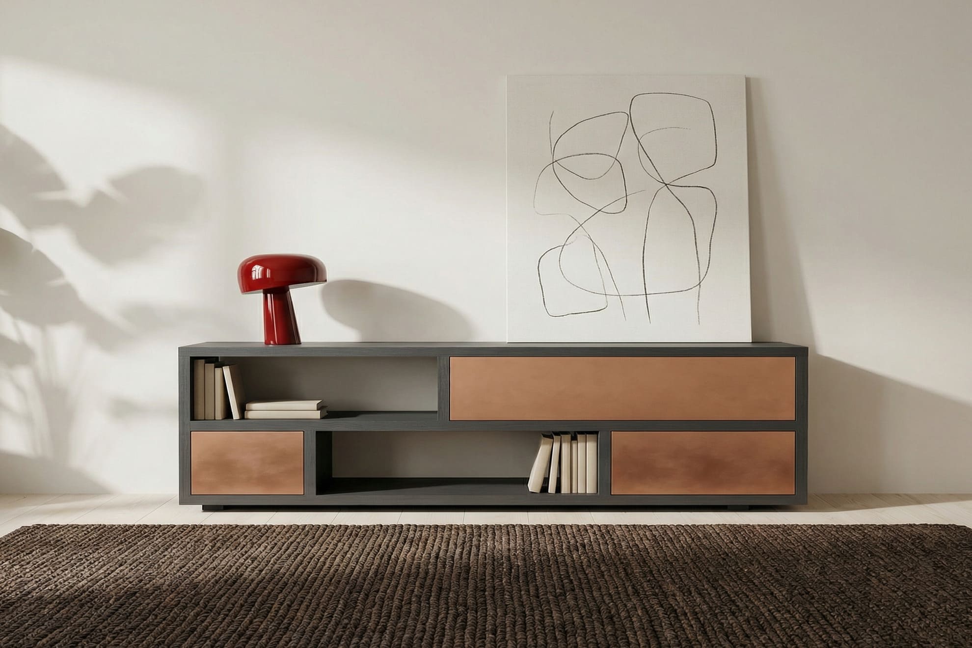 Pures Understatement, zeitlose Schönheit, spannende Materialbeziehungen. All das erfüllt das Beton-Sideboard Copper Box. Ob in 160 cm, 180 cm oder in 210 cm verwandelt das Betonmöbel als Mediaboard, als Sideboard oder als monolithisches Ausrufezeichen jeden Raum in eine Bühne puristischen Designs. Alle Varianten können auf Wunsch hinsichtlich Farbe des Betons oder der Frontmaterialien angepasst werden.